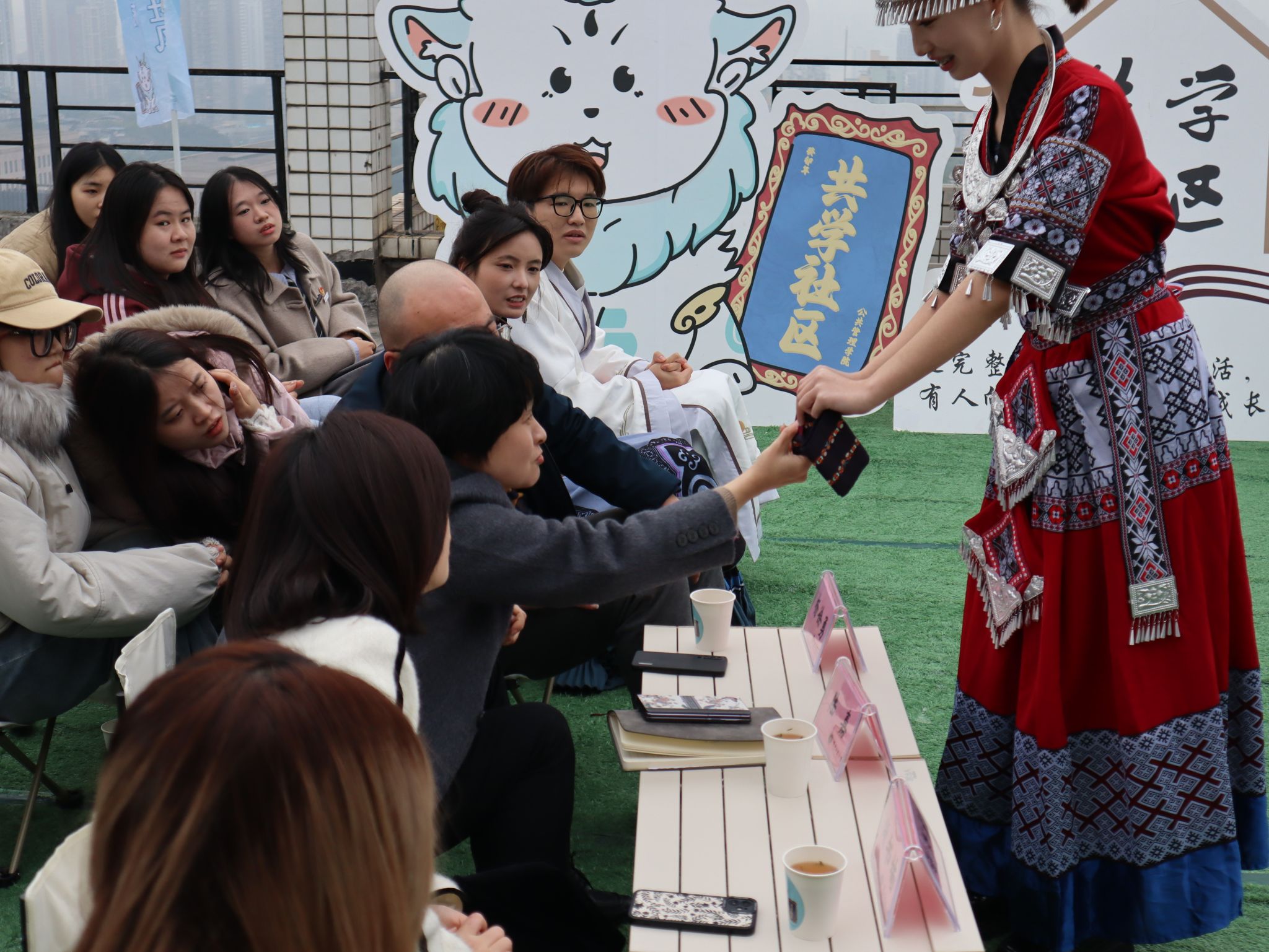 当前位置: 首页 >> 思政教育 >> 正文 五洲别畛,和合共生——公共管理学院共学社区举行第三期板凳会 时间:2025年03月12日 11:21 作者: 公共管理学院 为深入学习贯彻全国教育大会精神,贯彻落实全市教育大会精神,秉行“以文化人、以文育人、以文润心”文教一体理念,将中华优秀传统文化融入学生“一站式”社区建设。公共管理学院共学社区第三期板凳会“五洲别畛,和合共生”在北10栋公寓天台举行。党委学工部副部长杨徐勇、学院党委书记陆嘉、副书记谢书楠,来到现场与同学们共同探索中国传统文化的多样性、包容性与创新性。 “石榴花开,籽籽同心” 环节。来自苗族、彝族、仡佬族的同学,通过精美的苗族刺绣、独特的彝族文字语言、动人的彝族特色歌曲以及仡佬族的特色小吃,为现场师生带来了一场别开生面的民族文化盛宴。通过少数民族文化的分享与展示不仅让师生们领略了不同民族文化的独特魅力,生动呈现了中华优秀传统民族文化的独特魅力。 “山川异域,谊路同行”环节。聚焦国际文化交流,来自泰国、老挝、乌克兰的三名留学生分享了他们国家的特色文化以及在中国学习生活的文化体验与感悟,不仅展现了中华文化的国际影响力,也让同学们感受到了不同文化之间的交流与融合。同学们也围绕如何“推动中华优秀传统文化创造性转化和创新性发展”各抒己见,积极表达出自己的想法,为中华文化的传承与创新贡献智慧。 “跨越山海,‘语’你相会” 环节。留学生与中国各地同学分别用家乡语言表达对学校、重庆和中国的热爱,不同语言的交汇,演绎出多元文化的和谐共鸣,凸显了文化多样性的独特魅力。深刻诠释了在全球化背景下,中华文化与世界各国文化相互借鉴、共同发展的积极态势。 陆嘉在总结时强调,此次活动成功搭建起一座跨越国界与地域限制的文化桥梁,使得来自不同国家和地区的青年学子得以齐聚一堂。不同文化背景的碰撞与交流,在此刻绽放出绚丽的火花。她进一步表示,公共管理学院会始终坚守并继续秉承文化育人的核心理念,坚定不移地推动文化传承与创新工作。学院期望通过持续不断的努力,为青年学子创造更为丰富多元的文化交流场景,助力他们在多元文化相互交融、彼此借鉴的良好氛围中茁壮成长,成为栋梁之才。学院全体师生也将以实际行动,为我国文化强国建设事业奉献属于青年一代的蓬勃力量 。 据了解,公共管理学院共学社区“板凳会”已成功举办三期,吸引了来自全校不同学院、专业、年级的几百名学生踊跃参与。值得一提的是,在活动推进过程中,教工支部书记、思政课老师、学工队伍等多支重要育人力量纷纷走进社区,充分发挥他们自身优势,将“五育”融合理念深深融入学生成长成才全过程,借助“五育”各美其美的独特育人内涵,齐心协力培育“五美”新青年,为学生的全面发展保驾护航。 上一条:CTBU“小伙伴计划”之名师大讲堂考研政治基础班 下一条:关于加强防范电信网络诈骗添加校园警务微信的通知 【关闭】