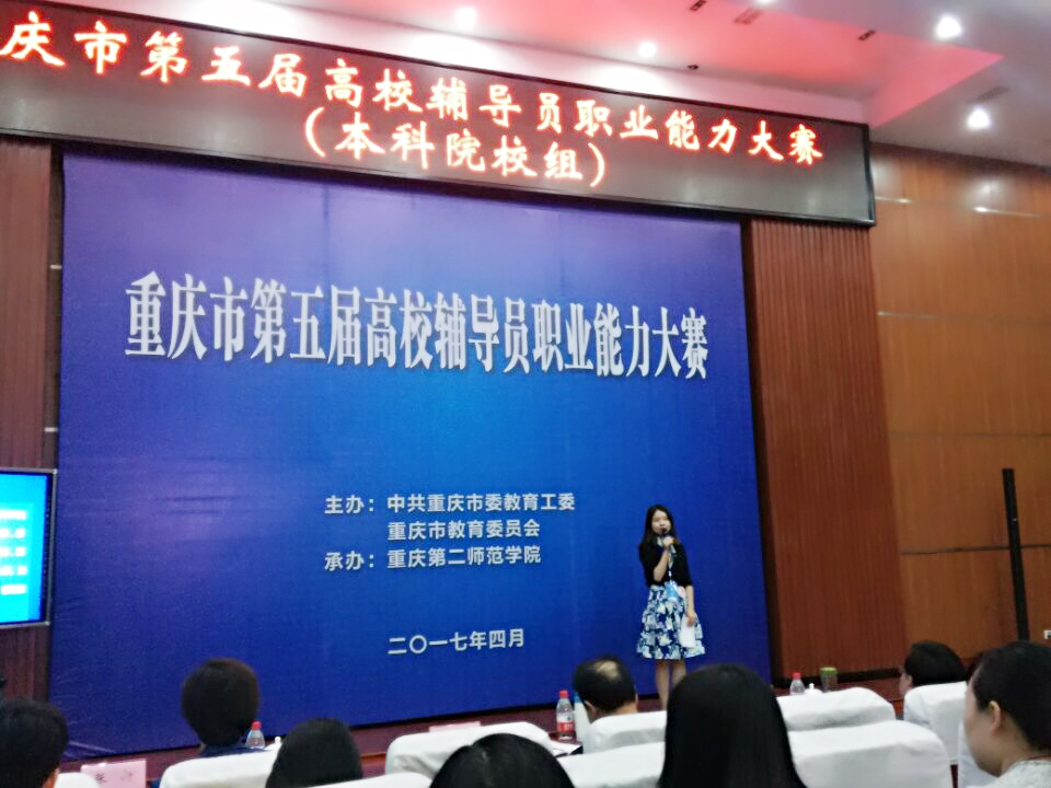 当前位置: 首页 >> 学工新闻 >> 正文 我校辅导员在重庆市第五届高校辅导员职业能力大赛中喜获佳绩 时间:2017年04月20日 10:09 作者: 4月15、16日,由中共重庆市委教育工委、重庆市教委主办的重庆市第五届高校辅导员职业能力大赛在重庆第二师范学院举行。计算机科学与信息工程学院辅导员刘昶、何莉两位老师代表我校,和来自全市61所高校的79名辅导员同场竞技,经过案例分析、主题演讲、笔试、谈心谈话四个环节的比拼,最终分别荣获本科组三等奖、优秀奖。刘昶老师还将代表重庆市参加月底在新疆农业大学举办的全国高校辅导员职业能力大赛片区复赛。 据悉,为了进一步学习贯彻全国高校思想政治工作会议精神,着力提升我校辅导员职业能力,党委学工部于今年年初组建了辅导员职业能力提升训练营。训练营下设的公文写作、主题演讲、谈心谈话、案例分析等专项小组,聘请校内外专家相继开展了培训和演练活动,取得了阶段性的成果,为他(她)们在学校和市级的比赛中展示能力和风采打下了基础。 上一条:我校辅导员在第六届全国高校辅导员职业能力大赛片区赛中喜获佳绩 下一条:我校召开2017年第2次学生工作例会暨“中华魂”(遵纪守法,从我做起)读书征文演讲比赛表彰会 【关闭】