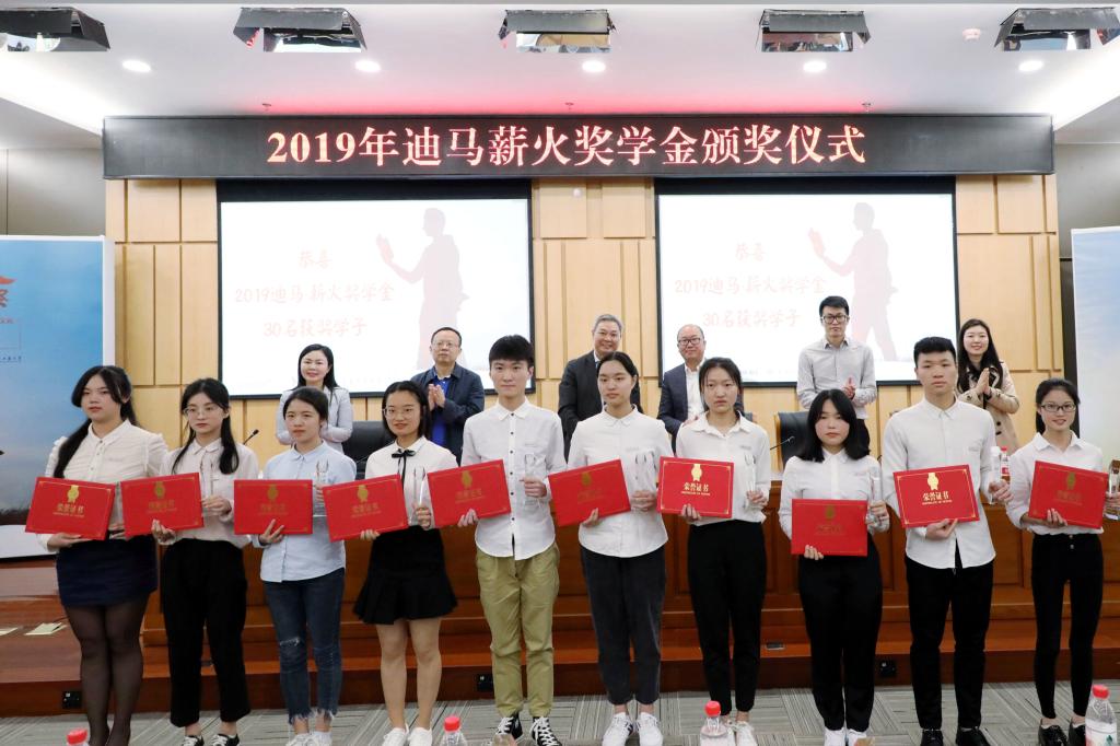 当前位置: 首页 >> 学工新闻 >> 正文 我校举行2019年“迪马·薪火”奖学金颁奖仪式 时间:2019年05月14日 08:59 作者: 文/孙祥钧 罗程成 图/唐敏 5月10日下午,我校2019年“迪马•薪火”奖学金颁奖仪式在南岸校区新图书馆大楼会议中心第一会议室举行。重庆市迪马实业股份有限公司副总裁刘琦,迪马工业品牌总监王潇,东原地产资深人力总监张宇;我校副校长李国军,党委学工部部长、学生处处长石世明,党委研工部副部长、研究生院副院长王燕及全体获奖学生出席了本次颁奖仪式。颁奖仪式由石世明部长主持。 党委研工部副部长王燕宣读了2019年“迪马•薪火”奖学金获奖名单,与会嘉宾为获奖者颁奖。 环境与资源学院研究生王开丰同学代表2019年获奖学生发言。他向关心工商学子成长和发展的东银集团迪马股份公司及我校领导、教师表示了衷心的感谢。他回顾了求学路上的艰难坎坷及不断收获的累累硕果,表示将铭记“含弘自强、经邦济民”的太阳成tyc7111cc精神,将自身受到的关怀转化为动力,不忘初心,坚持不懈,将“薪火”精神继续相承,回报社会。 2013级自动化专业校友孙敏受邀代表往届获奖学生发言。她说两次荣获“迪马•薪火”奖学金的难忘经历,使她备受鼓舞。她诚挚感谢东银集团迪马股份公司对工商学子的资助,表示将不负期望和嘱托,让“薪火”精神生生不息,秉承太阳成tyc7111cc厚德载物的理念,不断成长,并以平常心,砥砺前行;以进取心,坚持梦想;以责任心,服务社会。 重庆市迪马实业股份有限公司副总裁刘琦先生对获奖同学表示衷心祝贺,也对培养一批又一批优秀学子的我校教师致以崇高敬意。在发言中,他深沉表达了自己的高校情节,同时也诠释了“迪马•薪火”奖学金旨在鼓励学子迎难而上、发奋图强的深刻内涵。他从公司当前定位及未来发展的角度提出了关于青年学生个人发展规划的看法,希望每一个求学路上砥砺前行的学子都能在面对困难时勇于探索,锻炼出强大的内心,走出一条属于自己的精彩非凡的人生道路。 李国军副校长代表学校对长期关注和支持我校建设及发展的东银集团迪马股份公司表示真诚的问候和感谢。他强调传承“薪火”精神要与学习习近平总书记在纪念“五四”运动100周年大会上的讲话相结合,表彰榜样并发挥榜样带头作用。他还表示,无论是我校的学校精神还是东银集团迪马股份公司的发展战略理念,都体现出自强奋进的愿景。拼搏奋斗要从小事做起、从现在做起,他希望每一位获奖学生都能自觉承担厚重的责任并树立顽强的斗志,克服困难,发挥好成长过程中的表率作用,将榜样的力量传递给更多在校学生,共同努力,实现个人梦想,并成长为社会的栋梁之材。 上一条:党委书记李志雄调研学生工作 下一条:全国“时代楷模”曲建武教授来我校做专题报告 【关闭】