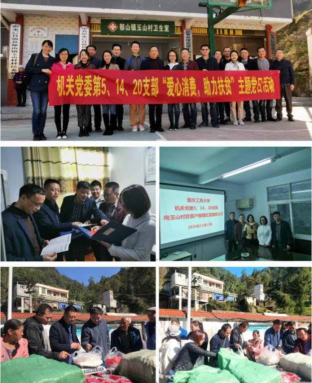 当前位置: 首页 >> 学工新闻 >> 正文 机关党委第5、14、20支部联合开展“爱心消费,助力扶贫”主题党日活动 时间:2020年11月16日 14:17 作者: 为积极响应上级有关消费扶贫号召,促进贫困群众增产增收,同时促进机关党建与扶贫工作相融合,提升支部凝聚力,11月13-14日,机关党委第5、14、20支部组织党员到彭水县郁山镇玉山村开展了“爱心消费,助力扶贫”主题党日活动。 经过4个多小时的车程,到达玉山村已接近下午6点。我校驻村扶贫干部刘代成同志接待了大家,介绍了该村脱贫攻坚相关情况,并一起集中学习了习近平总书记对脱贫攻坚工作作出的重要指示精神。申卫东、钟增胜、杨娟代表3个支部全体党员同志向玉山村贫困户捐赠了红苕苗款4000元。 第二天,全体党员参观了郁山镇川军抗日阵亡战士纪念园、怀龙庭等革命历史景点。随后又来到玉山村便民服务中心广场,争相购买贫困户带来的鸡鸭、鸡鸭蛋、红苕、苕粉等农副产品,消费5000余元。在购买的同时,部分党员同志还积极利用朋友圈、微信群等线上平台进行扶贫农副产品宣传。 大家纷纷表示,此次主题党日活动非常有意义,通过消费扶贫,既让大家买到安心放心的农副产品,又让贫困户得到实实在在的收益,实现互利双赢。他们也将以实际行动继续参与扶贫工作,为决战决胜脱贫攻坚贡献自己的力量。 上一条:我校学工队伍受邀参加“第二届新时代财经高校大学生劳动教育论坛” 下一条:学校组织召开“退伍不褪色,忠诚永记心” 退伍学生兵见面会 【关闭】