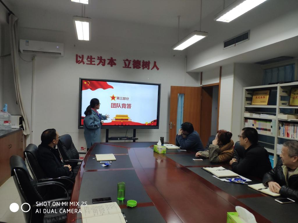 当前位置: 首页 >> 学工新闻 >> 正文 机关党委五支部组织开展十九届五中全会知识竞答活动 时间:2020年12月01日 08:41 作者: 周良勇 为树立学习标兵、检验学习成效,持续掀起学习贯彻热潮。11月30日下午,机关党委五支部在党员活动室组织开展十九届五中全会知识竞答活动。 本次竞答活动以十九届五中全会应知应会知识要点为主要内容,设置判断对错、单选、多选等多种题型。党员们争先抢答、踊跃发言,展现了机关党委五支部全体党员良好的精神风貌和求知若渴的学习劲头。竞答活动最终根据党员答题得分情况评选出一等奖、二等奖和三等奖若干名。 此次知识竞答活动,进一步发动和鼓励了支部全体党员真正把十九届五中全会知识“学懂、弄通、做实”,引导全体党员准确把握全会精神,提高政治站位与思想高度,切实把十九届五中全会精神转化为推动做好各项学生工作的强劲动力。党员们纷纷表示此次知识竞答活动很过瘾、很解渴,并希望党支部多举办此类活动,进一步提高支部党员的向心力和凝聚力。 上一条:我校2020年校长荣誉奖颁奖典礼隆重举行 下一条:我校学工队伍受邀参加“第二届新时代财经高校大学生劳动教育论坛” 【关闭】