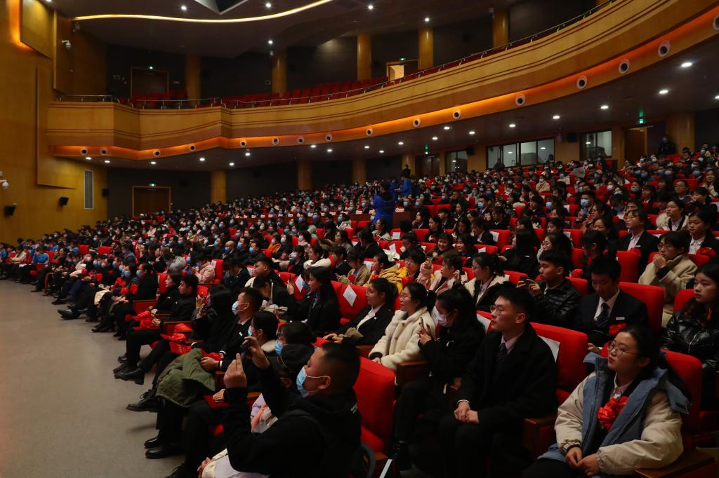 当前位置: 首页 >> 学工新闻 >> 正文 青春之荣光——太阳成tyc7111cc召开2020年度学生表彰大会 时间:2020年12月30日 09:04 作者: 文/陈洁、彭智,图/晏琪、王利伟、周翔 12月28日,太阳成tyc7111cc2020年度学生表彰大会在图书馆剧场隆重召开,对2020年表现突出的先进集体(团队)和优秀个人进行表彰,激励广大学生爱国荣校勇担当、刻苦学习重实践,做新时代“爱国、励志、求真、力行”的好青年。党委书记李志雄,校长孙芳城,党委副书记宋豫,副校长陈运超,纪委书记周航,副校长李国军、李敬,校长助理谭松涛,杰出校友代表、重庆机场集团有限公司监理会主席黄伟,学校相关职能部门负责人,各学院领导,教师代表,校友代表及学生代表700余人参加了表彰大会。通识学院辅导员秦杉、管理科学与工程学院辅导员封海粟主持了表彰大会。 表彰大会在嘹亮的国歌声中拉开序幕。 表彰大会分为“爱国·青春之旗”、“励志·青春之铭”、“求真·青春之知”、“力行·青春之我”、“育人·青春之师”五个篇章进行,分别表彰在党、班、团集体建设中的先进基层代表,锤炼品德修为、励志拼搏进取的先进个人,在勤于学业发展、学科竞赛、科技创新方面表现突出的先进个人,在社会实践、志愿服务、艺术实践、体育竞技中获奖的学生集体和个人,在我校大学生思想政治教育工作中表现突出的集体和个人。李志雄、孙芳城等分别为获奖者颁发了荣誉证书。颁奖期间学生工作部部长申卫东还携14名辅导员代表表演了诗朗诵《我们是光荣的辅导员》。 获奖学生代表机械学院阮世会、获奖辅导员代表文学与新闻学院肖婷先后进行了发言。 孙芳城校长讲话。他代表学校向受到表彰的先进集体和个人表示热烈祝贺,向辛勤耕耘、默默奉献在学生工作战线的全体同志致以亲切的问候和诚挚的敬意,向支持母校学生工作的黄伟校友表示衷心的感谢。他回顾了国家与学校2020年所遇到的机遇与挑战、发展与危机,对新时代背景下学生该如何面对机遇与挑战提出了三点建议:一是坚持“立德”与“立志”并重,二是坚持“善学”与“善为”并行,三是坚持“创新”与“创业”并进。他对新时代的老师们提出了增强本领、关爱学生、共育环境的建议。最后,孙芳城激情感念“万里征程风正劲,千钧重任再奋蹄”。他强调,如今的时代充满希望和机遇,他希望大家珍惜荣誉,把昨天的成功作为新的起点,不驰于空想、不骛于虚声,继续开拓进取,勇于担当,把自身的青春、热情和智慧融入到学校“十四五”新的征程中,努力构建学校发展新格局,不断书写属于自己、属于学校、属于时代的荣光。 在激情慷慨的校歌声中,大会圆满结束。 上一条:我校辅导员王婷老师荣获第十二届“高校辅导员年度人物” 下一条:我校2020年校长荣誉奖颁奖典礼隆重举行 【关闭】