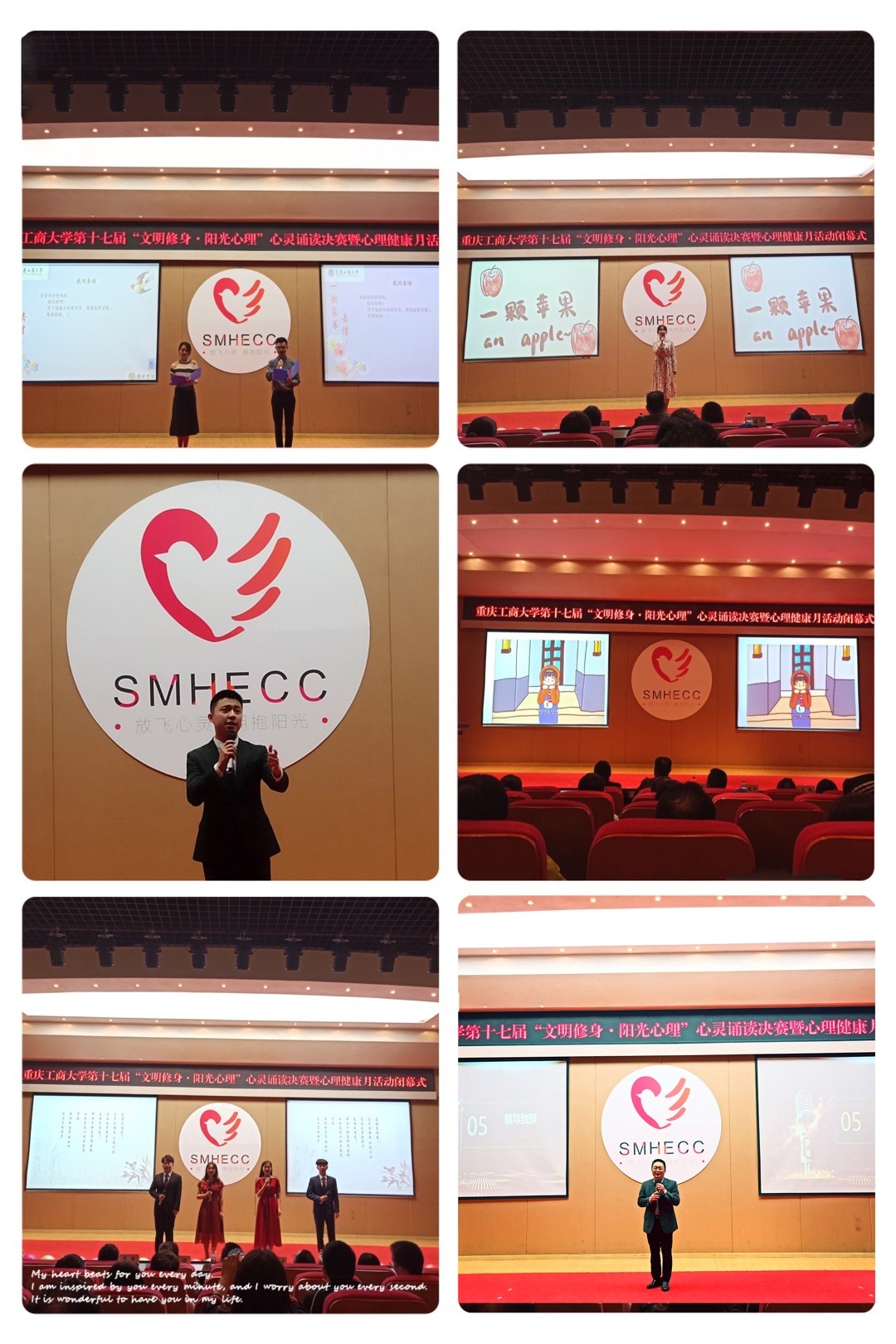 当前位置: 首页 >> 学工新闻 >> 正文 第十七届“文明修身 阳光心理”心理健康活动月圆满闭幕 时间:2021年05月31日 09:57 作者: 文/刘禹汐、图/何倩 5月 27 日下午6点30,由太阳成tyc7111cc党委学工部(学生处)主办,会计学院心理工作站、大学生自我管理与服务委员会心理健康部承办的第十七届“文明修身·阳光心理”心理健康活动月之“心灵诵读”决赛暨活动月闭幕式,在南岸校区田家炳书院 209 报告厅圆满落下帷幕。党委学工部部长申卫东、副部长尹建平,研工部副部长曾胜,各学院分管学生工作的副书记,团委组织部王微老师,大学生心理健康教育与咨询中心专兼职心理老师,以及各学院心理健康工作负责老师和学生代表共同参与了本次活动。 “文明修身 阳光心理”闭幕式活动共分为五个环节,“心灵诵读”活动决赛将闭幕式拉开了帷幕,五组参赛队伍呈现的经典作品可谓丰富多彩,选手们真挚、满怀情感的朗诵赢得了评委及观众的阵阵掌声。第二环节是“文明修身 阳光心理”活动回顾视频,对整个心理健康活动月进行了回溯;第三环节是成果展示:远离倦怠的《重生》,解压抗抑的《一颗苹果》,心理微课之容貌焦虑等精彩活动展示,得到了在场师生的积极响应。伴随阵阵掌声,闭幕式进入了颁奖环节,对“优秀心理委员”代表、“优秀心理工作者”代表,先进集体代表进行了颁奖。最后,申卫东部长对此次活动进行了总结讲话。他肯定了心理健康月活动对我校学生心理健康工作的重要推动作用,也强调了心理健康的重要性,鼓励在场同学提高对心理健康的认识,以及用积极的心态面对心理健康问题。同时也感谢所有为心理健康活动月付出辛苦努力的师生,精彩纷呈的活动背后离不开大家的凝心聚力,并衷心祝贺所有的获奖个人与集体。 据悉,从2005年第一届“5.25”心理健康月活动在我校成功举办起,至今已跨过了十七个春秋。在本届活动月中,我校18个学院累计承办12场心理健康主题活动,包括心理电影展播、心理拓展、心理知识竞赛、心理微课比赛、心理涂鸦比赛等形式新颖、意义深厚的心理活动,覆盖我校南岸主校区、兰花湖片区、江北校区,参与总人数累计达2万余人次。历时一个月的心理健康宣传教育活动,为同学们营造了健康向上的校园氛围,促进了阳光正能量的广泛传播,培养了学生珍爱生命、关爱自我、接纳自我的心理健康意识。 上一条:机关党委第五支部深入学习《中国共产党普通高等学校基层组织工作条例》 下一条:校领导到大学生心理健康教育与咨询中心调研指导工作 【关闭】