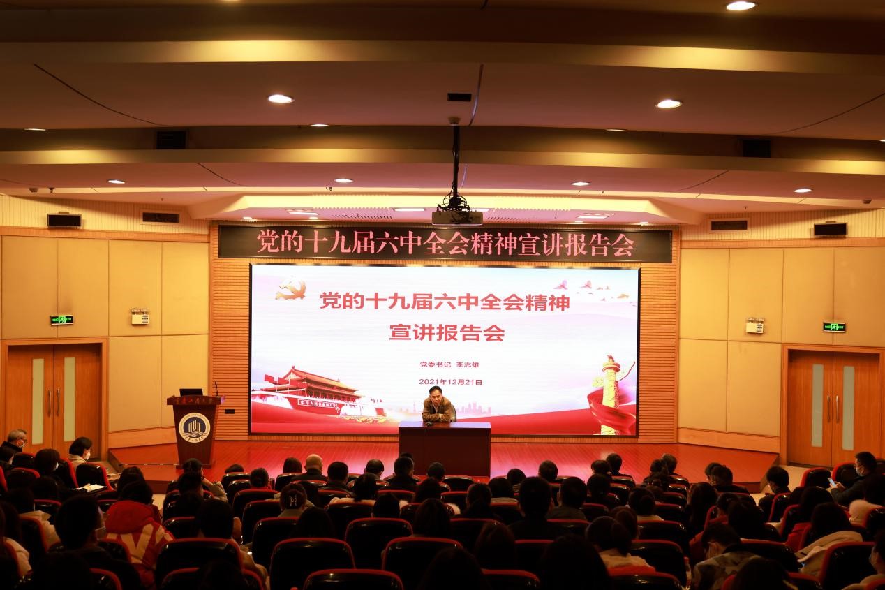 当前位置: 首页 >> 学工新闻 >> 正文 学校党委书记李志雄为学工系统作党的十九届六中全会精神宣讲报告 时间:2021年12月22日 17:17 作者: 记者:陈洁 李慧君 摄影:任有余 12月21日下午,学校党委书记李志雄在博智楼7200报告厅为学工系统作党的十九届六中全会精神宣讲报告。学院分管学生工作副书记、全体辅导员,学工部、团委全体职工聆听了报告。报告会由党委常委、副校长李国军主持。 李志雄指出,党的十九届六中全会是在中国共产党成立一百周年的重要历史时刻,是“两个一百年”奋斗目标交汇的重大历史关头召开的一次全局性、历史性意义的重要会议。要把深入学习宣传贯彻党的十九届六中全会精神作为当前和今后一个时期的重大政治任务。辅导员作为高校政治思想教育工作的中坚力量和高校大学生思想政治教育工作的排头兵,必须深刻理解和全面把握全会精神,努力把会议精神融会贯通在大学生政治思想教育工作中,把育人工作做在细微之处。 会上,李志雄以数字“五、四、三、二、一”为线,高度概括提炼了党的十九届六中全会精神内涵并展开宣讲。 “五”是深刻领悟全会精神的五大历史意义。《中共中央关于党的百年奋斗重大成就和历史经验的决议》从五个方面总结党的百年奋斗的历史意义,党的百年奋斗从根本上改变了中国人民的前途命运,开辟了实现中华民族伟大复兴的正确道路,展示了马克思主义的强大生命力、深刻影响了世界历史进程、锻造了走在时代前列的中国共产党。 “四”是了解党百年奋斗的四大历史阶段以及所取得的四个“伟大成就”。新民主主义革命时期,党领导人民浴血奋战、百折不挠,创造了新民主主义革命的伟大成就;社会主义革命和建设时期,党领导人民自力更生、奋发图强,创造了社会主义革命和建设的伟大成就;改革开放和社会主义现代化建设新时期,党领导人民解放思想、锐意进取,创造了改革开放和社会主义现代化建设的伟大成就;党的十八大以来,中国特色社会主义进入新时代,党领导人民自信自强、守正创新,创造了新时代中国特色社会主义的伟大成就。 “三”是理解马克思主义中国化的三次理论飞跃和三个决议,毛泽东思想的创立是马克思主义中国化的第一次历史性飞跃;中国特色社会主义理论体系的形成实现了马克思主义中国化新的飞跃;习近平新时代中国特色社会主义思想的创立实现了马克思主义中国化新的飞跃;《关于若干历史问题的决议》《关于建国以来党的若干历史问题的决议》《中共中央关于党的百年奋斗重大成就和历史经验的决议》。三个决议彰显着铭记历史、启迪未来的深远战略考量。 “二”是知晓党的十九届六中全会强调的“两个确立”,党确立习近平同志党中央的核心、全党的核心地位,确立习近平新时代中国特色社会主义思想的指导地位。 “一”是一定要牢记中国共产党是什么、要干什么这个根本问题,把握历史发展大势,坚定理想信念,牢记初心使命,始终谦虚谨慎、不骄不躁、艰苦奋斗。 李志雄以中华民族伟大复兴的“复兴”为切入点,回望中华民族五千年历史,讲述了中华民族从1840年鸦片战争的爆发,到1919年进入新民主主义革命阶段,再到1949年新中国成立,以及社会主义的建设和探索阶段,中国共产党是如何在黑暗中诞生,在苦难中成长,在挫折中奋起,不断带领中国人民团结奋斗从站起来到富起来再到强起来的;他以我国国内生产总值、我国经济总量在世界排名等具体数据为支撑,鲜明直观地展现了中国共产党领导人民,运用马克思主义理论不断探索社会主义发展道路,最终影响世界发展进程,并取得举世瞩目的辉煌成就。 李国军结合自身对于全会精神的学习理解对李志雄的宣讲内容进行概括总结,并就此向学校全体学工队伍提出三点要求。一是要认真落实、全面领会贯彻党的十九届六中全会精神,把学习领会全会精神与学习贯彻习近平新时代中国特色社会主义思想深入结合。进一步增强“四个意识”,坚定“四个自信”。二是要广泛宣传,营造浓厚氛围。通过理论学习、“三会一课”、主题党日、主题团日、社团活动等形式,原原本本学,联系实际学,将学习心得面向基层、面向广大青年学子,开展丰富的宣讲活动,全面掀起学习热潮。三是要结合实际,切实做好日常思政工作。落实立德树人根本任务,把学习领会全会精神与学习贯彻习近平总书记关于建设教育强国的重要论述结合起来,对标“加快推进教育现代化、建设教育强国”的宏伟目标,将思政工作做在日常,做到个人,不断提升育人实效。 上一条:人生最美是军旅,志存高远砺青春——太阳成tyc7111cc组织2022年春季征兵宣传周活动 下一条:学校举办第七届辅导员素质能力大赛 【关闭】