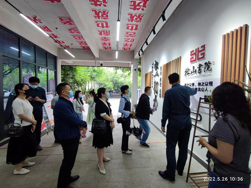 当前位置: 首页 >> 学工新闻 >> 正文 学生处组织到重庆移通学院、重庆工商职业学院调研“一站式”社区建设工作 时间:2022年06月01日 09:44 作者: 5月26日,党委学工部副部长、学生处副处长陈龙国带领调研小组前往重庆移通学院合川校区、重庆工商职业学院合川校区,调研交流“一站式”学生社区综合管理模式建设工作,调研小组一行包括经济学院党委副书记王燕、环境与资源学院党委副书记谭彩荷、学生处公寓学工办相关人员、部分楼管会主任、楼栋学生干部。 调查小组先后参观了两所高校的学生公寓、书院制建设、“一站式”学生社区综合管理模式建设,深入考察了重庆移通学院荷悦书院、天渠书院、北山书院、爱莲书院的各种活动室、交流室、文化室、实践室,以及重庆工商职业学院学生公寓的活动室、学习室等多个社区育人平台,听取了相关管理人员的详细介绍,充分学习了对方在“一站式”学生社区综合管理模式创建中的先进经验。 参观完毕分别召开了现场交流座谈会,参加座谈会的人员除调研小组外还包括重庆移通学院党委副书记、副校长周伟、学生处处长陈帅、书院部部长穆春江,以及重庆工商职业学院学生处副处长周同磊、后勤管理处副处长陈龙刚等领导。大家就“一站式”社区建设要求、书院与学院的关系、社区辅导员队伍建设等问题进行了深入交流,一致认为应在加强党建引领、全面提升思政育人实效、创新性融合与全方位陪伴、打造沉浸式社区育人文化等方面齐抓共举建设适应新时代特色的“一站式”学生社区。 结束调研后,调研小组进行了热烈讨论,表示将学习两所高校先进经验,积极探索我校“一站式”社区建设模式,营造学生公寓良好育人氛围。 上一条:学校召开2022年学生档案工作会 下一条:【双创在行动】参军报国放飞远大理想,携笔从戎书写绿色年华 【关闭】