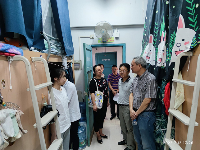 当前位置: 首页 >> 学工新闻 >> 正文 副校长李国军带队看望关心暑期留宿学生 时间:2022年07月13日 10:44 作者: 暑期来临之际,7月12日下午,学校党委常委、副校长李国军一行深入南岸校区南区、北区学生公寓,看望关心暑期留宿学生,检查指导留宿学生服务保障工作。学生处申卫东处长、陈龙国副处长、张朝毅副处长和相关学院负责人陪同慰问检查。 李国军来到留宿学生寝室,向在场同学表示亲切慰问,与同学们进行深入交流,听取了同学们暑期的学(实)习安排与打算,对不畏酷暑、刻苦学习的同学们给予高度赞扬,对考研学子寄语殷切祝福。李国军还详细询问了今年暑期学生公寓留宿学生的学院分布、楼栋分布、人数等情况,要求学生处、相关职能部门和学院要协同联动,进一步做好暑期学生公寓留宿各环节工作,为暑期留宿学子提供平安和谐的住宿环境。 据悉,今年我校暑期留宿学生共计3100余人,他们在暑期期间将主要参与校院两级组织的暑假社会实践活动、教学实习、学科竞赛备赛集训、科研项目研究和考研等方面。为此,学生处出台了《关于做好2022年暑假留宿学生教育管理的通知》,切实为暑期留宿学生做好保障服务工作。 上一条:我校隆重举行2021级学生军训总结表彰大会 下一条:我校顺利完成跨校区学生寝室搬迁工作 【关闭】