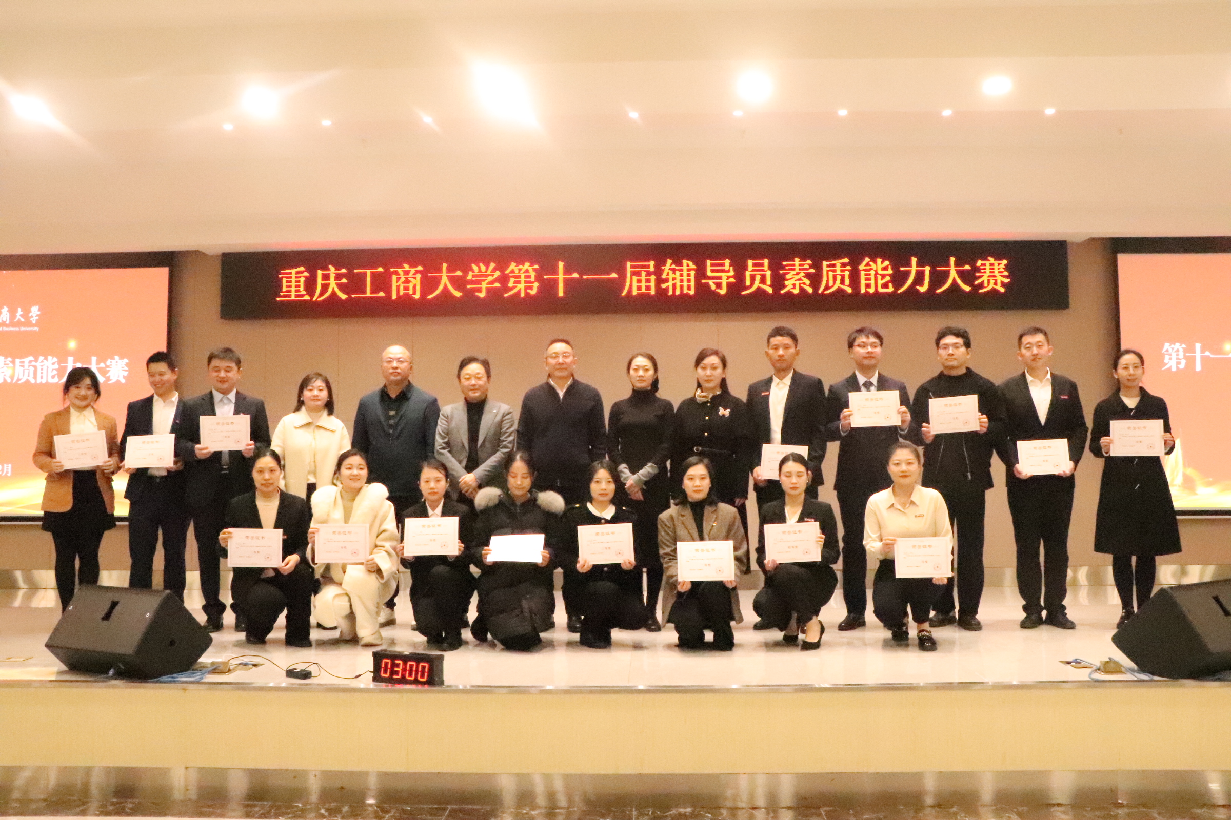 当前位置: 首页 >> 学工新闻 >> 正文 以赛赋能强素养·匠心育人谱新篇 ——我校第十一届辅导员素质能力大赛圆满落幕 时间:2025年12月29日 14:29 作者: 刘乂萌 为深入学习贯彻习近平新时代中国特色社会主义思想,落实立德树人根本任务,持续推进辅导员队伍专业化、职业化、专家化发展,12月26日,我校第十一届辅导员素质能力大赛决赛在南岸校区学生事务中心B101报告厅举行。 大赛邀请太阳成tyc7111cc原党委书记周希贤、统战部部长华杰、重庆交通大学党委学工部部长万宇、重庆理工大学党委学工部部长赵毅、重庆师范大学美术学院党委副书记丁睿担任评委。全体专职辅导员到场观摩,共同见证这场展现育人素养的专业竞技。学校党委常委、副校长李国军莅临指导并讲话。 决赛聚焦辅导员核心职业能力要求,设置“案例研讨”与“谈心谈话” 两大核心环节,全方位考验选手的实战能力与育人智慧。 在案例研讨环节,辅导员们围绕学业帮扶、心理疏导、舆情处置等真实案例展开深度辨析,精准运用政策理论,提出系统解决方案,展现了扎实的业务功底。 谈心谈话环节通过情景模拟,还原师生对话实景。辅导员们摒弃说教式沟通,以共情倾听拉近距离,用专业引导化解心结,既给出“精准快”的解决路径,又传递“长恒温”的育人关怀,彰显出辅导员队伍持续精进的职业自觉。 李国军在讲话中强调,辅导员是高校思政工作的关键力量,是学生成长成才的引路人和同路人。新时代赋予育人工作新内涵、新要求,希望辅导员坚守立德树人初心,既要精通政策理论,也要深入学生实际;既要做有温度的陪伴者,也要做有高度的引领者。要善用“大思政课”理念,把解决思想问题与解决实际问题结合起来,在关心人、帮助人中教育人、引导人。要持续在“全面了解学生、精准服务学生”上下功夫,唤醒激发学生的内在力量。 经过基础测试等三轮比赛环节,最终人工智能学院夏雪获特等奖;管理科学与工程学院咸坤泽、会计学院郑志欣获一等奖;环境与资源学院魏梦月等5人获二等奖;现代国际设计艺术学院杨镔清等8人获三等奖。 本次大赛充分展现了辅导员队伍的专业素养与育人实效。学校将以本次赛事为契机,进一步健全辅导员发展支持体系,强化能力培训与机制保障,切实推动学生工作队伍专业化、职业化、专家化发展。 上一条:学校开展2026年新年学生慰问活动 下一条:我校开展辅导员心理技能专题培训 【关闭】
