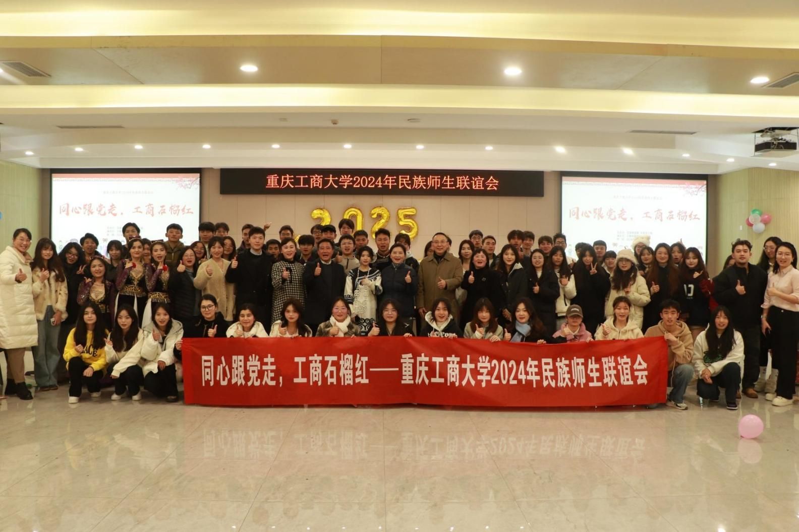 当前位置: 首页 >> 学生管理 >> 其他工作 >> 正文 我校举办“同心跟党走 工商石榴红”民族师生联谊活动 时间:2024年12月30日 11:12 作者: 江妮芸 12月27日下午,学校党委统战部、党委学工部和少数民族教职工联谊会联合组织学校民族师生在学校学生事务中心B101会议室开展以“同心跟党走 工商石榴红”为主题的民族师生联谊会。学校党委常委、副校长、少数民族教职工联谊会会长任毅,党委常委、统战部部长华杰,党委保卫部部长、少数民族教职工联谊会副会长沙云,党委学工部副部长、少数民族教职工联谊会副会长谭彩荷,经济学院财政税收系主任、教工四支部书记韩建和新疆内派老师胡厶瑜出席本次联谊会。 华杰为活动致辞。他指出,习近平总书记强调,党的十八大以来,我们党强调中华民族大家庭、中华民族共同体、铸牢中华民族共同体意识、推进中华民族共同体建设等理念,鲜明提出把铸牢中华民族共同体意识作为新时代党的民族工作的主线、作为民族地区各项工作的主线。他表示,民族师生群体是学校师生的重要组成部分,在即将过去的2024年我校民族师生同心携手,开展了“结对子”活动和“CTBU小伙伴”计划,共同进步、奋发进取,为学校的改革发展做出了重要贡献。他希望,我校少数民族师生响应党中央的号召,遵循习近平总书记的殷殷嘱托,继续在日常学习、生活和工作中坚定铸牢中华民族共同体意识,积极投身推进中华民族共同体建设,为强国建设、民族复兴的贡献自己的荣光和力量。联谊会上,少数民族的同学们热情洋溢地分享了自己的学习经验和实践成果。韩建分享了有关专业学习的相关经验。随后,同学们依次表演了独具民族特色的歌唱和舞蹈节目。现场载歌载舞,气氛热烈,在场师生脸上洋溢着灿烂的笑容,彼此间传递着温暖与喜悦,充分展现了重工商大人积极乐观、昂扬向上的精神风貌。 任毅作总结讲话。她简要回顾了今年我校在学校发展上取得的好成绩,并表示这些成绩的取得是全校教职工共同努力的结果。她向我校少数民族师生为学校事业发展团结奋斗表示感谢,向支持关心本次民族联谊会的领导和干部表示感谢,向全心全意组织开展民族工作的相关部门表示感谢。任毅向少数民族师生提出了三点目标和要求:一要铸牢中华民族共同体意识;二要守正创新、不懈奋斗,为学校为国家为社会贡献自己的智慧和力量;三要踔厉奋发、赓续前行,牢记自己的责任、使命和担当,同心共圆中华民族伟大复兴的中国梦。 通过这次活动,师生们纷纷表示,对少数民族的艺术文化有了更深刻的认识和了解,也更加坚定了铸牢中华民族共同体意识的决心。 下一条:关于统计填报高等教育质量监测国家数据平台本科学生相关数据的通知 【关闭】