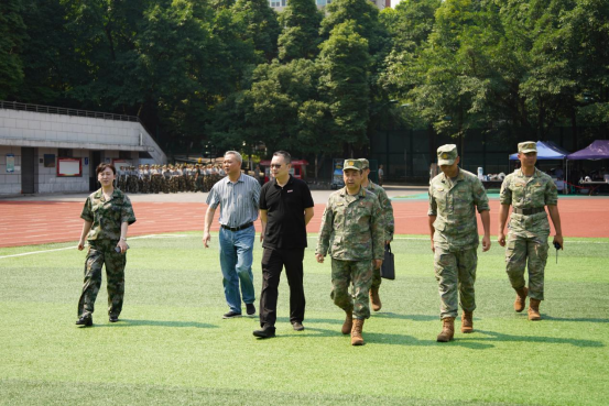 当前位置: 首页 >> 国防教育 >> 军事训练 >> 正文 重庆警备区及学校领导慰问2022级军训师生教官 时间:2023年07月11日 17:14 作者: 军姿飒爽,青春激昂,学校2022级学生军训有序进行。7月3日至10日,重庆警备区办公室大校主任韩志明,学校党委书记李志雄,校长温涛,党委常委、副校长李国军到南岸校区、兰花湖片区军训现场,看望慰问2022级军训师生和教官,检查指导军训工作。党政办公室、党委武装部等职能部门和相关学院负责人陪同慰问检查。 慰问检查过程中,领导们先后在军训现场听取了相关部门、学院领导及军训教官有关军训情况的汇报,详细询问了南岸校区南区和北区田径场参训学生的学院专业分布、参训人数等情况,仔细查看了军训现场、后勤医用物资储备。并向严格施训的教官、刻苦训练的学生和辛勤付出的老师们表示充分的肯定和高度的赞扬。 领导们强调,军训是当代大学生的一门必修课,也是培养德智体美劳全面发展的社会主义建设者和接班人的一门重要课程。他们勉励军训学子,要锤炼意志品质、坚定理想信念,学习军人的铮铮铁骨,立志做有理想、敢担当、能吃苦、肯奋斗的新时代好青年。他们希望教官们继续发扬我军不怕疲劳、连续作战的优良作风,倾心带出一支召之即来、来之即战、战之能胜的钢铁队伍,为落实立德树人根本任务,培养文武双全的重工商大优秀学子作出应有贡献。他们提出,各部门、各学院要认真履行安全工作责任,注意师生的身体健康,做好后勤保障工作。同时,要切实把学生军训作为立德树人和开展国防教育的重要一环,全面激发学生爱国热情、增强国防观念,强化学生组织纪律性和集体荣誉感,以良好的精神气充分展现出重工商大学子的青春力量。 上一条:我校隆重举行2022级学生军训汇报表演暨总结表彰大会 下一条:我校隆重举行2021级学生军训总结表彰大会 【关闭】