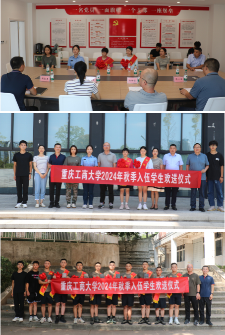 当前位置: 首页 >> 国防教育 >> 大学生应征入伍 >> 正文 学校举行2024年秋季入伍学生欢送会 时间:2024年09月20日 09:05 作者: 周良勇 9月14日、19日,学校党委武装部分别在南岸区役前教育基地和学校学生事务中心举行欢送仪式,送别即将入伍的11名学生。学校党委武装部副部长杨徐勇、入伍学生、入伍学生家长、入伍学生辅导员、退伍学生代表、国防教育协会学生代表等相关人员参加了欢送会。 会上,杨根、肖诚诚、吴璇等3名退伍男兵和伍彩凤、叶雨芊等2名退伍女兵分享了当兵收获,即将入伍的同学纷纷进行表态发言,学生家长也为同学们送上了美好的祝福。 杨徐勇向即将入伍的同学表示祝贺,向学生家长的培养教育表示感谢,并勉励同学们到部队后要始终坚守入伍初心,听党话、跟党走,到部队后刻苦训练,百炼成钢;要奋勇争先、建功立业,珍惜身上戎装,珍惜军人荣誉,不负时代、不负韶华,争做人民军队好战士,争做父母放心好儿郎,展现重工商大学子的良好形象,早立新功、早传捷报,在部队建功立业,为学校增光添彩,为强国梦强军梦作出积极贡献。 上一条:太阳成tyc7111cc举行2024年秋季退伍学生欢迎会 下一条:太阳成tyc7111cc举行2024年春季入伍学生座谈会 【关闭】