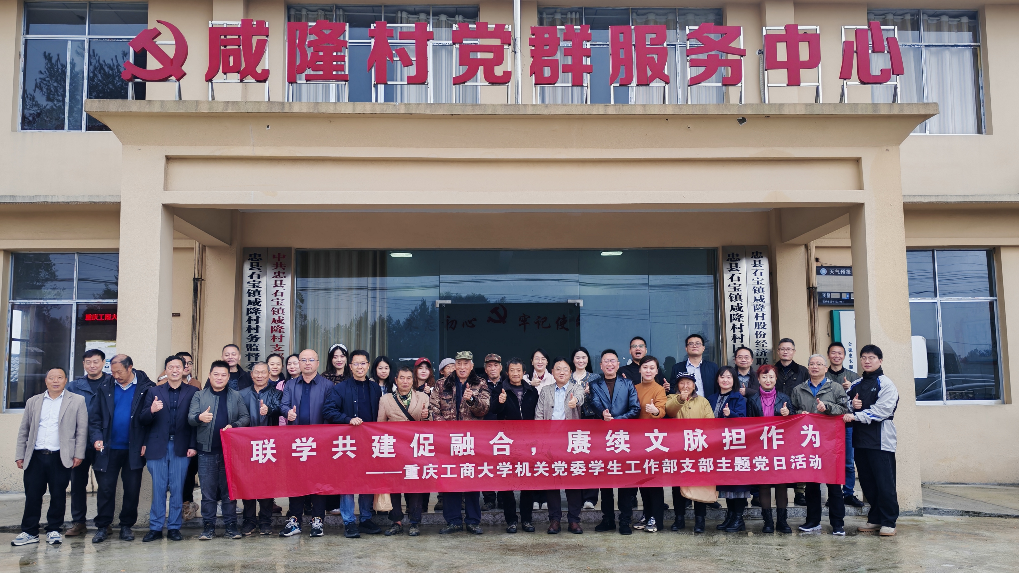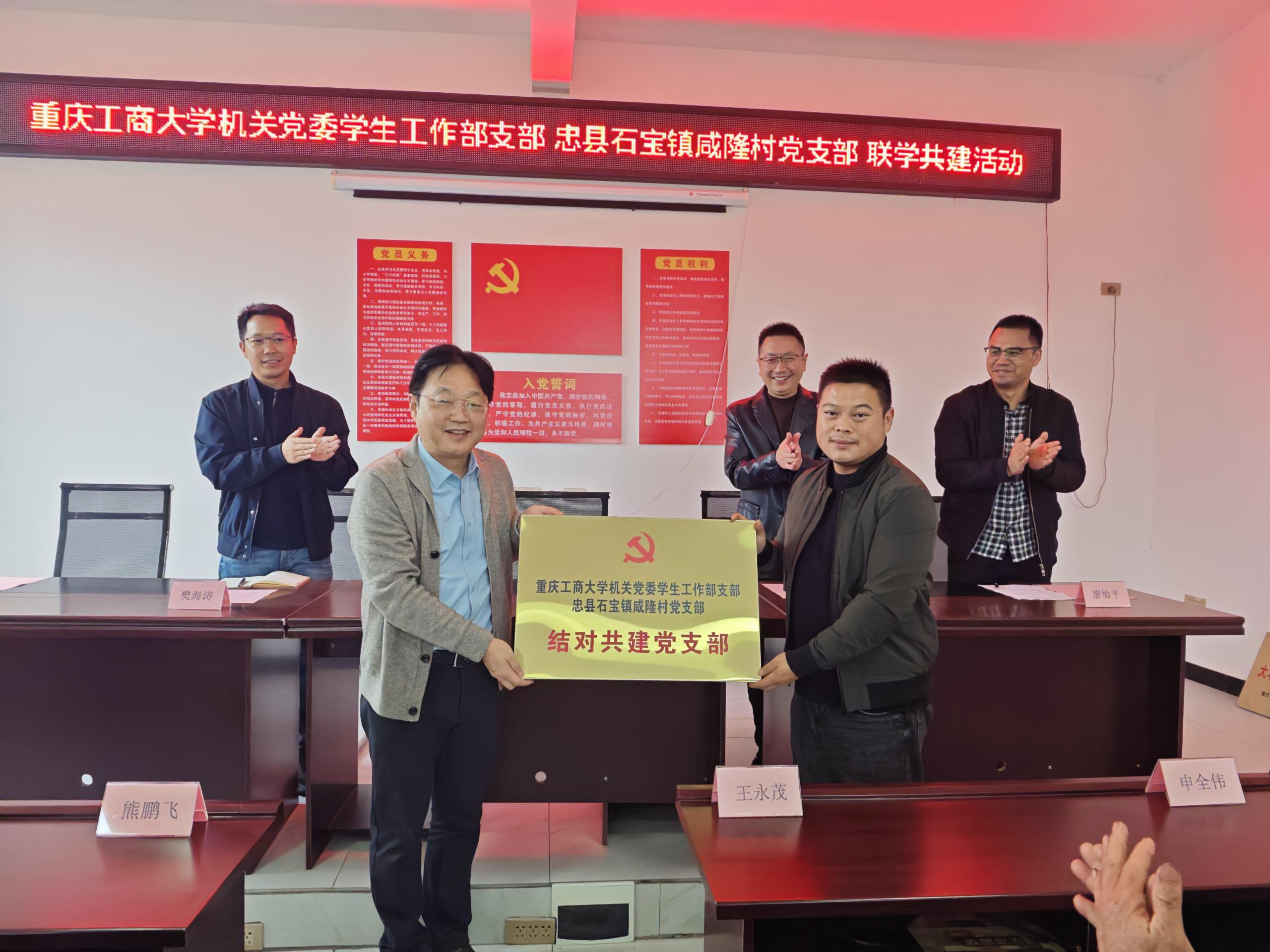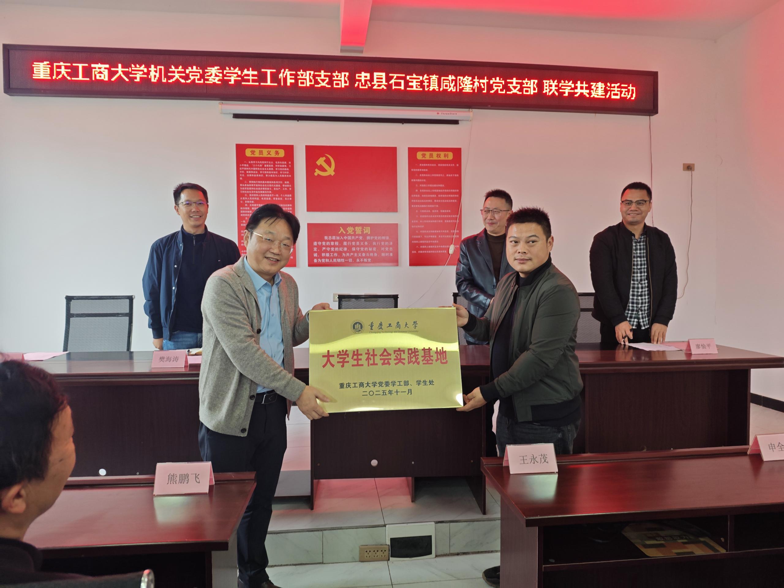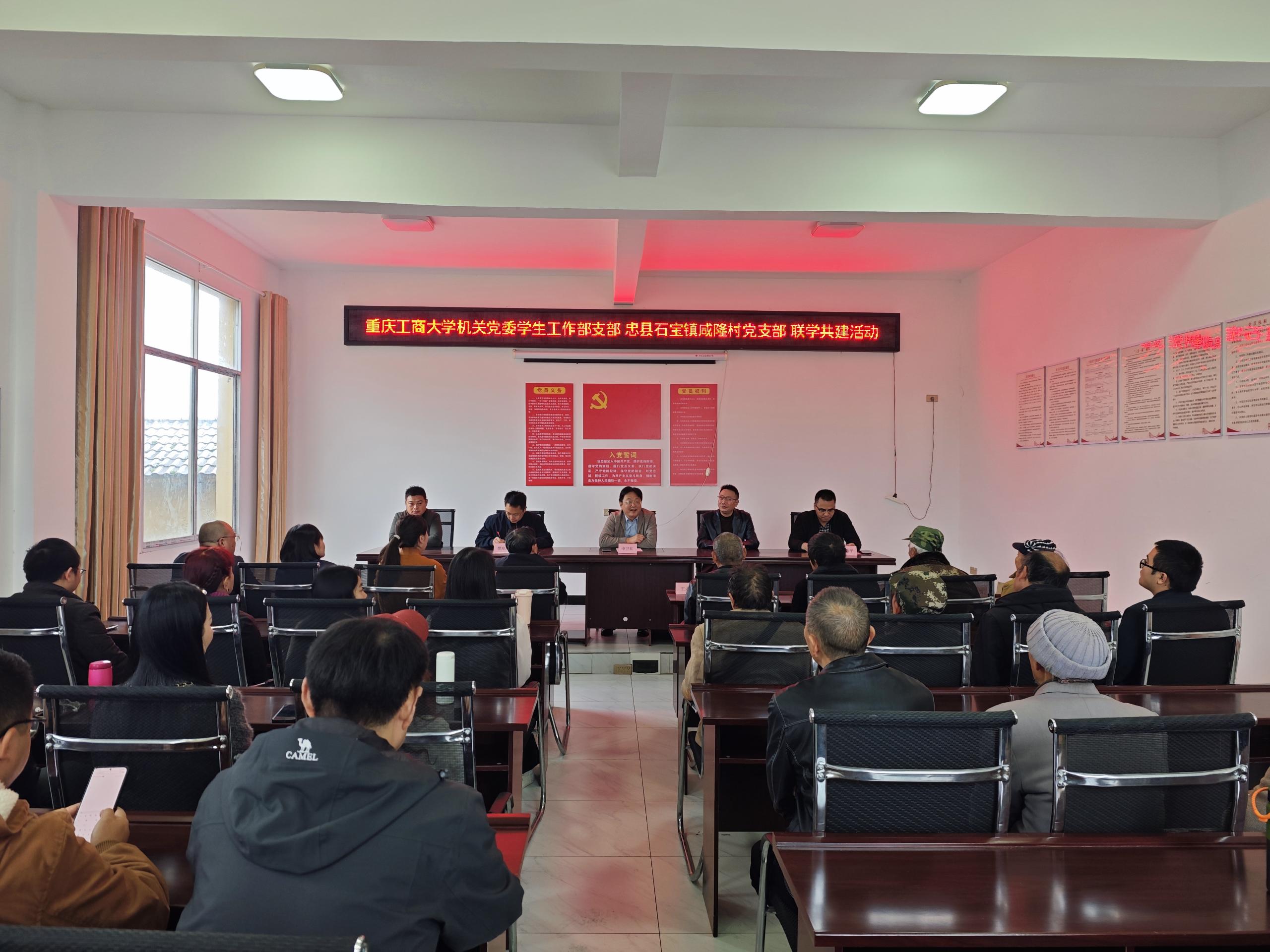 当前位置: 首页 >> 党建工作 >> 正文 校地联建聚合力 双向赋能促振兴——机关党委学生工作部党支部赴忠县开展主题党日活动 时间:2025年11月10日 15:15 作者: 周良勇 为深入学习贯彻习近平新时代中国特色社会主义思想,推动基层党组织互动共进,强化党建引领乡村振兴实效,11月 7 日至 8 日,机关党委学生工作部党支部组织全体党员赴忠县石宝镇咸隆村开展主题党日活动,看望慰问我校派驻石宝镇咸隆村驻村第一书记廖愉平同志,开展支部共建活动。 8 日上午,机关党委学生工作部党支部与咸隆村党支部在该村党群服务中心开展结对联建活动。支部书记申卫东,忠县石宝镇党委副书记、镇长刘艳权,重庆市纪委监委帮扶集团驻忠县磨子乡驻乡工作队副队长樊海涛,两个支部党员参加了活动,活动由咸隆村驻村第一书记廖愉平主持。 活动中,双方围绕党建经验互鉴、志愿服务联动、大学生社会实践基地共建、乡村发展赋能等开展“联学联建”座谈交流,明确合作方向,共同表达了校地携手共促乡村振兴的愿景。申卫东围绕党的二十届四中全会公报和“十五五”规划等内容,为与会党员做了宣讲。 活动现场还举行了结对共建党支部授牌、大学生社会实践基地授牌仪式,机关党委学生工作部党支部为咸隆村老党员送上慰问品,并捐赠价值 1 万余元的爱心物资,以实际行动传递党组织的关怀与支持。 据悉,廖愉平今年 7 月派驻咸隆村以来,全覆盖走访全村近 300 户村民,带领村民开辟了仙鹤草中草药种植试验田,设立忠县籍贫困大学生助学金并对33名贫困学生实施精准资助达6.6万元,打造数字乡村治理 App,为乡村振兴筑牢坚实基础。 刘艳权表示,校地党建联建是激活乡村振兴内生动力的重要举措,必将为咸隆村发展注入强劲动能。 此次活动既是主题党日的实践深化,更是国家级样板支部发挥示范引领作用的具体体现。通过联学共建、物资捐赠、基地共建等多元举措,既锤炼了党员党性,又搭建了校地长期合作平台。党员们纷纷表示,将持续把活动成效转化为工作动力,以实际行动助力乡村振兴,推动党支部凝聚力和战斗力不断提升。 下一条:机关学生工作部党支部开展“传承红色基因 筑牢保密防线 弘扬爱国精神”主题党日活动 【关闭】