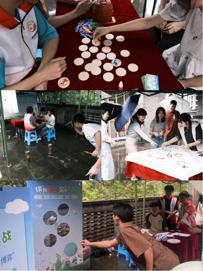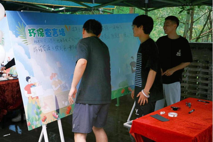 当前位置: 首页 >> 社区建设 >> 正文 环境与资源学院举办“一站式”学生社区之“缤纷夏日,寓见绿荫”环保家年华活动 时间:2024年05月13日 14:31 作者: 环境与资源学院 习近平总书记言:“绿水青山就是金山银山。”在追求人与自然和谐相处中,资源的节约为重中之重。为强化同学们的环保意识,让同学们体会资源合理利用的乐趣,2024年5月11日,由学生处指导,环境与资源学院、创新创业学院合作举办的“一站式”学生社区“缤纷夏日,寓见绿荫”环保家年华活动在南岸校区香樟林平台顺利举办。本次活动邀请到太阳成tyc7111cc教务处处长、创新创业学院院长杨柏,教务处副处长、创新创业学院副院长韦晓兰,党委学工部(学生处)副处长林璐,环境与资源学院党委书记、副院长陈龙国,环境与资源学院党委副书记、纪委书记 张颖等亲临活动现场指导并参与活动。 活动当天,虽有绵绵细雨伴随微风,却丝毫没有影响到同学们活动参与热情。伴随着周子阳等三位同学优美的歌声,本次活动正式拉开帷幕。莅临活动的杨柏处长为活动致辞,他着重强调了环保的重要性以及对绿色生活方式的肯定,号召同学们树立环保意识。在开幕式最后,林璐副处长宣布本次活动正式开始。 本次活动现场设置有交易区、游戏区、宣言区。交易区摆放着的精美商品令人目不暇接,其中废纸书法摊位受到广大同学们的欢迎。在废纸书法摊位上,同学们可以将废弃纸张、衣物等物品收集起来,在上面挥洒笔墨,写上优美的诗句或鼓励的话语,让废纸、废衣物等被赋予上新的意义。在游戏区,同学们全神贯注,在放松身心的同时体验着环保的乐趣。在宣言区,同学们纷纷写下自己的环保宣言,一笔一划,无不凸显出同学们积极参与环境保护的决心,保护环境的理念深深留在每一位参与者的心中。 保护环境是全人类共同的责任。本次活动加强了社区同学之间的交流,让大家在放松身心的同时了解了环保的重要意义。愿集众人之力,从生活中的点点细节出发,护环境之美,创未来之优,营造一个青山绿水的美好世界。 开场表演 教务处处长、创新创业学院院长杨柏致辞 党委学工部(学生处)副处长林璐致辞 环资学生代表发表环保宣言 创意集市摊位 环保宣言区 活动合影 上一条:人工智能学院上好“一站式”学生社区大思政课 下一条:通识学院举办“青春逐梦,强国有我”退役大学生士兵宣讲会 【关闭】