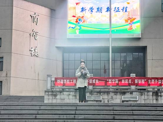 当前位置: 首页 >> 社区建设 >> 正文 太阳成tyc7111cc举行“开学第一课”主题升旗仪式 时间:2025年02月26日 11:35 作者: 管理科学与工程学院 2025年2月24日,由管理科学与工程学院承办的铸魂领航工程·国旗下话成长——“新学期,新起点,新征程”开学第一课主题升旗仪式在太阳成tyc7111cc含弘广场举行。学院党委副书记赵钰鑫、学生工作办公室主任、分团委书记颜语,辅导员邓诗语、蒋幸福、邰俊英及2023级学生代表150余人共同见证了这一庄严时刻。 国旗护卫队迈着矫健的步伐,护送着鲜艳的五星红旗缓缓步入升旗台。随着雄壮激昂的国歌声响起,五星红旗在晨风中冉冉升起,全场师生肃然而立,行注目礼,心中激荡着对祖国的无限敬仰和对新学期的美好憧憬。 赵钰鑫寄语师生在新学期开启新征程,希望全体师生能够以“哪吒”的奋斗精神为引领,勇于面对挑战,不畏艰难困苦,勇敢打破偏见,用青春书写“可为”与“有为”;引用DeepSeek的探索精神,希望同学们敬畏未知、脚踏实地,成长为行业骨干和国家需要的人才;强调同学们应发挥潜力,不负祖国和时代的期望,以爱国热情和奋斗精神谱写青春乐章,铸就辉煌。 学生代表孟令奎发表演讲,回顾了过去一年的学习和成长经历,表达了对新学期的期待,鼓励同学们珍惜大学的每分每秒,积极参与学术研究和社团活动,不断拓宽自己的视野。勇敢挑战那些看似遥不可及的目标,在挑战中挖掘出无限潜力,绽放耀眼的青春光彩。 此次升旗仪式不仅为师生们带来了新学期的鼓舞与力量,更是一次激励青年学子勇于追梦、敢于创新的盛会。同学们纷纷表示,将以此次主题升旗仪式为起点,在新的学期以更加饱满的热情和昂扬的斗志投入到新学期的学习与生活中,为学校高质量内涵式发展贡献自己的力量。 上一条:环境与资源学院楼管会开展“返家乡”主题寒假实践活动 下一条:翠湖书院学生社区成功举办第三期职业技能训练营 【关闭】