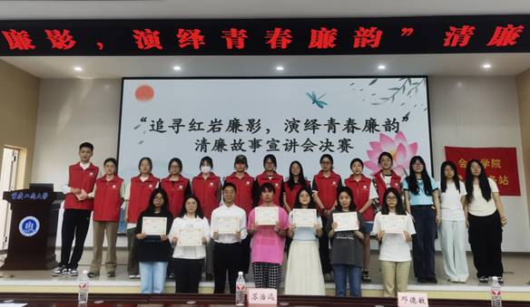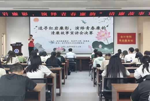 当前位置: 首页 >> 社区建设 >> 正文 从梁家河故事到红岩先烈事迹:太阳成tyc7111cc清廉宣讲决赛引领青年厚植廉洁底色 时间:2025年04月21日 14:53 作者: 会计学院 为深化党团联动机制,激活“一站式”学生社区党建育人动能,引领青年学子厚植廉洁底色、共筑校园清风生态,2025年4月18日下午,校纪检监察室、党委学工部、校团委与会计学院红岩党员服务站于明德楼1019报告厅,联合举办“追寻红岩廉影,演绎青春廉韵”清廉故事宣讲会决赛。学校纪检监察室主任苏治远、校团委书记吴佑波、会计学院党委书记邓德敏、党委副书记郝颖,携7位参赛选手及会计学院80余名师生,共同参与这场“党建+廉洁”的育人实践。 本次清廉故事宣讲会竞赛分为初赛与决赛两轮。初赛于2025年3月18日正式启动,以线下宣讲的形式开展,共有17人参赛,最终7位同学凭借出色表现成功晋级决赛。决赛正式开始前,邓德敏书记发表活动致辞。他充分肯定了此次宣讲会的重要意义,强调要以本次活动为契机,将廉洁文化深度融入日常学习生活之中。 决赛现场,七位宣讲人以真实故事、生动语言阐释“清正廉洁”内涵:讲述习近平总书记梁家河知青岁月廉洁故事,学习其清廉为民品格;展现周恩来、董必武、彭德怀等老一辈无产阶级革命家以坚定信仰和无私奉献彰显的共产党人高尚品质与伟大情怀;重温江姐、陈然、刘国鋕等革命先烈在黑暗岁月中面对敌人威逼利诱,坚守党的秘密和信仰、以大无畏精神践行清廉与忠诚的事迹。决赛还特别设置了互动环节,现场气氛热烈。同学们踊跃参与知识问答,在思维的碰撞与观点的交流中,进一步深化了对廉洁文化的认知与理解,将抽象的廉洁理念转化为具体的行动指南。 与此同时,现场还播放了廉洁主题短片《致敬先辈的一封信》,通过鲜活的案例、动人的故事和震撼的画面,进一步增强了活动的感染力与影响力。经过激烈角逐,王良芳同学凭借出色表现斩获一等奖,曹馨月和周传炜同学荣获二等奖,曾善美、刘宇佳、韩郑镓呈和韩慧怡同学获得三等奖。他们的精彩宣讲,充分展现了对廉洁文化的深刻理解与生动诠释。 此次清廉故事宣讲会在热烈的掌声中圆满落幕。活动不仅搭建起廉洁文化传播的桥梁,更在每位参与者心中播撒下崇廉尚洁的种子,为营造清正廉洁的校园环境注入了强大的精神动力。 上一条:党建引领“会乐有约” 共筑育人发展新篇 下一条:健康集市进社区,青春赋能“一站式”——太阳成tyc7111cc“健康集市”活动引领校园健康新风尚 【关闭】