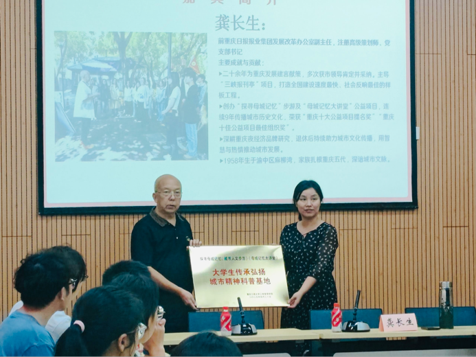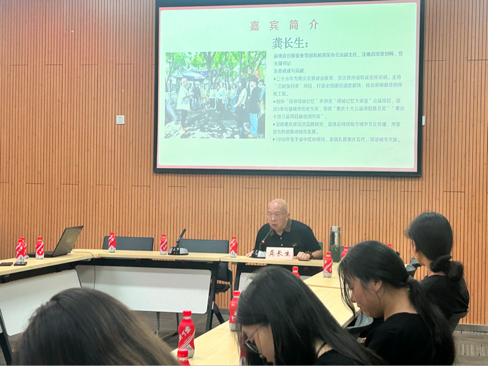 当前位置: 首页 >> 社区建设 >> 楼栋管理委员会 >> 正文 楼管会举办“对话五老:‘解码岁月初心,点燃青春火炬’”主题讲座活动 时间:2025年05月22日 12:07 作者: 工商管理学院北2、北5、北14、南8楼管会 5月21日,为深入推进“一站式”学生社区建设,创新社区思政教育形式,工商管理学院北2、北5、北14、南8楼管会联合学院关工委在图书馆会议中心二会议室成功举办“对话五老:‘解码岁月初心,点燃青春火炬’”主题讲座活动。本次活动吸引了全校50余名师生的热情参与。 活动特邀老党员龚长生作为主讲嘉宾。龚长生是原重庆日报报业集团发展改革办公室副主任兼党支部书记,曾参加自卫反击战并幸存,现为重庆市文化和旅游发展研究会副会长、重庆母城文化宣传推广发起人。他长期致力于重庆历史文化保护与传播,发起“探寻母城记忆”等多项公益活动,获得“重庆十佳公益项目”等荣誉。 活动伊始,工商管理学院学工办主任谭予涵为龚长生授予“大学生传承弘扬城市精神科普基地”荣誉牌,以感谢他对红色文化传播的贡献。讲座分享过程中,龚老以亲身经历讲述党的奋斗历程,从知青岁月到军旅生涯,从战场故事到建设历程,生动诠释共产党人的初心使命。通过一个个鲜活的历史片段,将红色记忆娓娓道来,为青年学子带来一堂生动的红色思政课。活动现场气氛热烈,龚老“脚踏实地做事,心怀家国做人”的寄语引发强烈共鸣。 本次活动创新性地将红色教育融入“一站式”社区文化建设,通过老一辈革命者的生动讲述,让同学们深入了解党的历史,感悟红色文化的深刻内涵,引导学生树立正确世界观、人生观、价值观,增强社会责任感和历史使命感。同时通过代际对话实现红色基因的薪火相传,促进青年一代和老一辈革命者的之间的交流,为“一站式”社区建设注入精神动力。 上一条:会计学院楼管会举办“艾香传古韵,粽情绘新章”端午非遗体验活动 下一条:以创意赋能环保,以实践深化育人——南16A1楼栋开展旧物改造活动 【关闭】