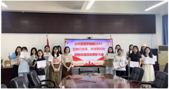 当前位置: 首页 >> 社区建设 >> 楼栋管理委员会 >> 正文 以创意赋能环保,以实践深化育人——南16A1楼栋开展旧物改造活动 时间:2025年05月13日 12:15 作者: 公共管理学院南16A1楼管会 5月12日,公共管理学院南16A1楼栋在启智楼成功举办“旧物巧变身,环保新时尚”主题活动表彰大会。此次活动以沉浸式劳动教育为载体,通过构建“旧物收集-创意改造-成果展示-环保理念传播”闭环模式,积极响应学校“一站式”社区建设,旨在引导学生践行环保理念、提升实践创新能力,为校园绿色发展与社区治理注入新活力,公共管理学院党委副书记谢书楠、公寓负责人蒋杰及20余名同学参与了此次表彰会。 “旧物改造创意分享”环节。从活动宣传到最终作品提交,共吸引了六十余名学生参与。参赛者利用废旧纸箱、塑料瓶、旧衣物等材料,设计出兼具实用性与美感的创意作品,经过楼栋成员公开投票评选,最终评出“最具创意奖”“最佳使用奖”“最佳美观奖”各2名及“优秀奖”8名。获奖作品涵盖家居用品、装饰艺术、生活工具等类别,充分展现了学生变废为宝的巧思与动手能力。 表彰大会环节,获奖学生依次登台展示作品并分享创作理念。活动现场还设置了作品展览区,吸引众多师生驻足交流。 此次活动是《公共管理学院“共学社区”综合管理模式建设实施方案》中聚力打造的“共学.智创工程”的落实落地。未来,学院将鼓励更多学子以创意践行绿色使命,开展艺术作品设计、创意作品等方式装饰社区空间、美化环境、建设文化长廊等活动,为构建环保校园与美好社会贡献力量。 上一条:楼管会举办“对话五老:‘解码岁月初心,点燃青春火炬’”主题讲座活动 下一条:北15、北6楼管会联合举办“扭出花样,共赴春光”手工活动 【关闭】