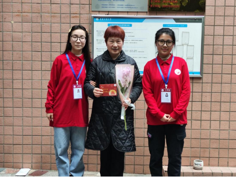 当前位置: 首页 >> 社区建设 >> 党员服务站 >> 正文 “温馨家园,感恩有你”——经济学院党员服务站成功举办妇女节送祝福活动 时间:2024年04月22日 17:06 作者: 迟日江山丽,春风花草香。在这个草木蔓发、春山可望的美好时节,我们迎来了节日——“三八”国际劳动妇女节。为感谢各楼栋宿管阿姨们在工作中的无私奉献,真挚表达经济学子对宿管阿姨的尊敬之情,经济学院党员服务站为宿管阿姨们送去鲜花和贺卡,向在岗位上付出辛勤劳动的她们予以节日的祝福和问候。 3月8日上午10点,经济学院党员服务站成员们准时到达北15栋楼下集合,随后分为三批,分别前往北15栋、北6栋、北21栋为宿管阿姨献上满载节日祝福的芬芳鲜花与亲手制作的精美贺卡并合影留念,对阿姨们日复一日的辛勤工作表达感激与敬意。收到祝福的阿姨们深受感动,灿烂的笑容与鲜艳的花朵交相辉映。 初心不改芳华在,砥砺前行又一春。本次暖心送花祝福活动,表达了对全体宿管阿姨的关怀与尊敬,传递了“三八”国际劳动妇女节团结、平等、进步的节日精神,进一步拉近了学生与宿管之间的情谊,在一定程度上培养了经济学子的感恩之心和人文关怀精神,营造了美好、和谐的校园文化氛围,传递了满满的正能量,让友爱的氛围在校园内延续。最后,在这个美丽的节日里,向每一位在岗位上坚守和奋斗的女性致敬,祝福她们节日快乐! 上一条:华龙网报道我校党员服务站开展红色故事宣讲会 下一条:工商管理学院“小红船”党员服务站举办“春风拂来雷锋月,爱不闲置暖人心”爱心捐赠活动 【关闭】