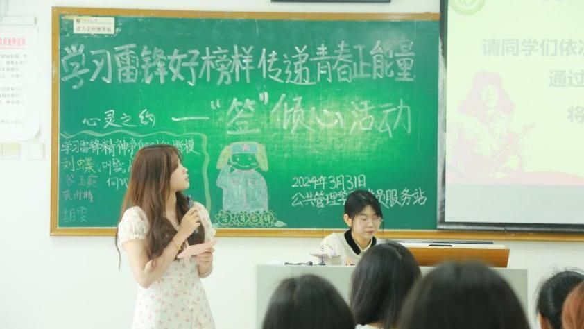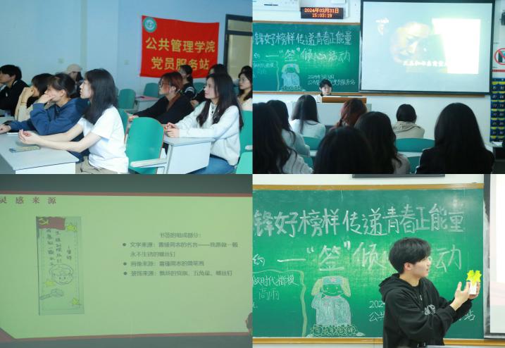 当前位置: 首页 >> 社区建设 >> 党员服务站 >> 正文 “学习雷锋好榜样,传递青春正能量”——公共管理学院党员服务站一“签”倾心活动圆满结束 时间:2024年04月02日 11:13 作者: 公共管理学院党员服务站 “历史滚滚向前,雷锋精神历久弥新”。雷锋不仅是一个名字,更象征了一种精神,一立丰碑,感召了一辈辈人树立不计小我、成就大我的理想信念。2024年3月31日,太阳成tyc7111cc公共管理学院党员服务站于南岸校区博智楼07111开展“学习雷锋好榜样,传递青春正能量”——一“签”倾心活动,10位活动参与者和公共管理学院党员服务站22位工作人员参与此次活动。 本次活动参与者以“雷锋精神”为主题制作书签,活动前同学们在“心灵之约”黑板上写下自己的姓名,在活动中大家先观看雷锋精神的相关短片,再分享各自作品的创作灵感,启发大家时刻将雷锋作为榜样,将他的精神融入日常生活中。活动开始前,工作人员引导同学们到场后在“心灵之约”的黑板上留下自己的姓名。 参与者签名 活动开始,主持人江雨介绍本次活动主旨、意义及活动具体流程,并宣布活动正式开始。 主持人讲解流程 活动期间,每一片段观影结束后,参与者们上台分享自己制作书签过程中的感想和书签的制作灵感,分享结束后主持人询问大家对活动开始前大家在黑板上签名的理解,大家都结合活动内容阐述了自己的理解。雷锋曾说,把有限的生命投入到无限的为人民服务之中去,作为新时代的新青年,弘扬雷锋精神要结合自身工作、融入学习生活中去。 活动剪影 全体人员大合照 “三月春风处处暖,雷锋精神代代传。”当学雷锋活动融入日常、化作寻常,当雷锋精神在新时代绽放更加璀璨的光芒,必将为强国建设、民族复兴凝聚起更为强大的力量。本次活动不仅弘扬了雷锋精神,同时也进一步展现了公共管理学院“一站式”学生社区以“共学”享文化之美、共育时代新青年为目标,推动当代学生德智体美劳全面发展的发展内核,实现温暖关爱陪伴同学们整个大学生活。 上一条:让爱国教育“声”入人心!太阳成tyc7111cc会计学院红岩党员服务站开展红色故事宣讲会 下一条:数学与统计学院党员服务站举办“聚焦两会韵,启迪心灵梦” 主题党日活动 【关闭】