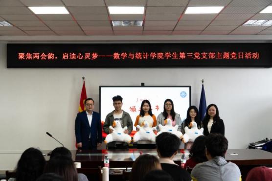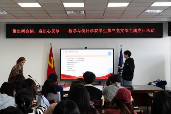 当前位置: 首页 >> 社区建设 >> 党员服务站 >> 正文 数学与统计学院党员服务站举办“聚焦两会韵,启迪心灵梦” 主题党日活动 时间:2024年03月31日 11:16 作者: 数学与统计学院党员服务站 为深入学习贯彻习近平新时代中国特色社会主义思想和全国两会精神,数学与统计学院党员服务站、数学与统计学院学生第三党支部于3月28日在启智楼80602以“聚焦两会韵,启迪心灵梦”为主题举行了一场别开生面的主题党日活动。活动邀请了学院党委书记潘焱、党委副书记吉杲到场指导。 支部书记郭春霞带领全体党员深入学习了全国两会精神,并汇报了学生第三党支部在前期对两会知识学习方面取得的成果;曹剪、曹心雨同学则分别从“两会基础知识”和“两会热词新词释义”两个维度,分享了他们在学习后的深刻感悟和宝贵体会;在“两会知识竞答”环节,同学们踊跃参与,现场气氛活跃而热烈;此外,活动还集中展示了支部成员在自主学习两会精神过程中所撰写的读书笔记,充分展现了党员们的学习热情和成果。 吉杲作为学生第三党支部的联系院领导对本次活动进行了点评,他对同学们积极主动的学习态度表示赞赏,并提出了殷切的期望,鼓励大家将两会精神的学习成果转化为实际行动。在活动的尾声,潘焱和吉杲为在知识竞答环节中表现优异的前四名颁发了奖项。 按照创建“党建双创标杆学院”的安排和部署,学生第三党支部一直致力于构建具有“学习型、服务型、融合型”特色的红岩先锋变革型党支部。本次主题党日活动正是通过创新的学习方式,深入理解新理论、政策和方针,是打造“学习型”党支部的重要实践。通过本次活动,党员们不仅加深了对两会精神的理解,增强了思想自觉,更激发了将理论知识转化为实际行动的热情,为推动学院的发展和社会的进步贡献了自己的力量。 上一条:“学习雷锋好榜样,传递青春正能量”——公共管理学院党员服务站一“签”倾心活动圆满结束 下一条:经济学院党员服务站成功举办“不忘初心忆党史,红色剪纸颂党情”——“一站式”学生社区建设之剪纸比赛 【关闭】