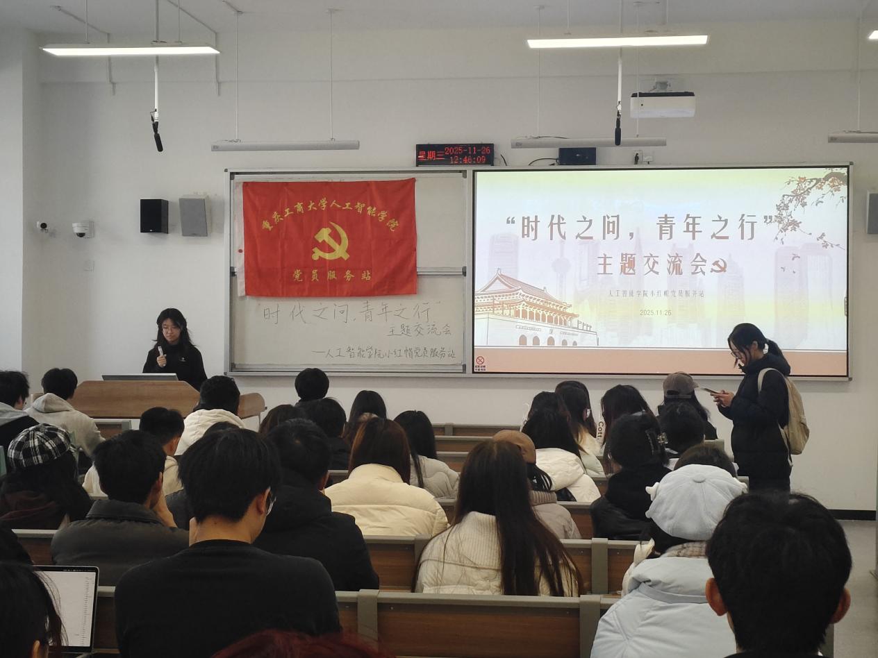 当前位置: 首页 >> 社区建设 >> 党员服务站 >> 正文 人工智能学院小红帽党员服务站举办“时代之问,青春之行”主题交流会 时间:2025年11月27日 11:00 作者: 人工智能学院党员服务站 为引导青年学生从历史长河中汲取奋进力量,在时代征程上明确使命担当,2025年11月26日,人工智能学院小红帽党员服务站举办的“时代之问,青年之行”主题交流会在宏智楼222教室圆满落幕。党员服务站全体成员齐聚一堂,通过历史回溯、互动交流、榜样学习等形式,展开了一场跨越时空的红色思政对话。 活动伊始,主持人张雨柔以“历史、时代、未来”三大维度为脉络,分享王兴兴深耕机器人领域打造民族品牌、宋令东坚守二十载圆梦太空的青年楷模故事,点燃了现场氛围。两位青年榜样在不同领域攻坚克难、逐梦报国的经历,让在场学子深受触动,为后续交流奠定了精神基调。 主题分享与互动环节。围绕五四运动、改革开放、脱贫攻坚三大关键历史节点展开深度探讨。“历史之问”雨课堂抽答、史料解读重温五四精神,引导学生感悟青年在民族觉醒中的先锋作用;“时代之问”通过青藏铁路、入世等影像与互动提问,让学生直观感受改革开放的发展脉搏;“未来之问”立足专业特色,围绕“AI技术回应社会需求”展开讨论,学子从智能助老等方向建言献策,展现了专业青年的创新思维与社会关怀。 活动尾声,主持人发出倡议,号召全体成员做历史的传承人、时代的答卷人、未来的行动者,将历史精神转化为日常信念,把专业优势融入志愿服务与党员建设。此次交流会以创新红色教育形式,将历史解读与专业特色、青年担当相结合,帮助学生理清历史脉络,激发使命意识与行动自觉。未来,党员服务站将持续深耕思政教育创新,推出特色活动以推动红色教育走深走实,引导青年学子在新时代新征程中以青春之我、奋斗之我书写时代答卷。 上一条:法学与社会学学院党员服务站举办“园游惊鸿少年气,会逢知己山海心”主题游园会 下一条:立报国强国大志向 做挺膺担当奋斗者——会计学院红岩党员服务站举办第八期“阅读悦青春”读书分享会 【关闭】