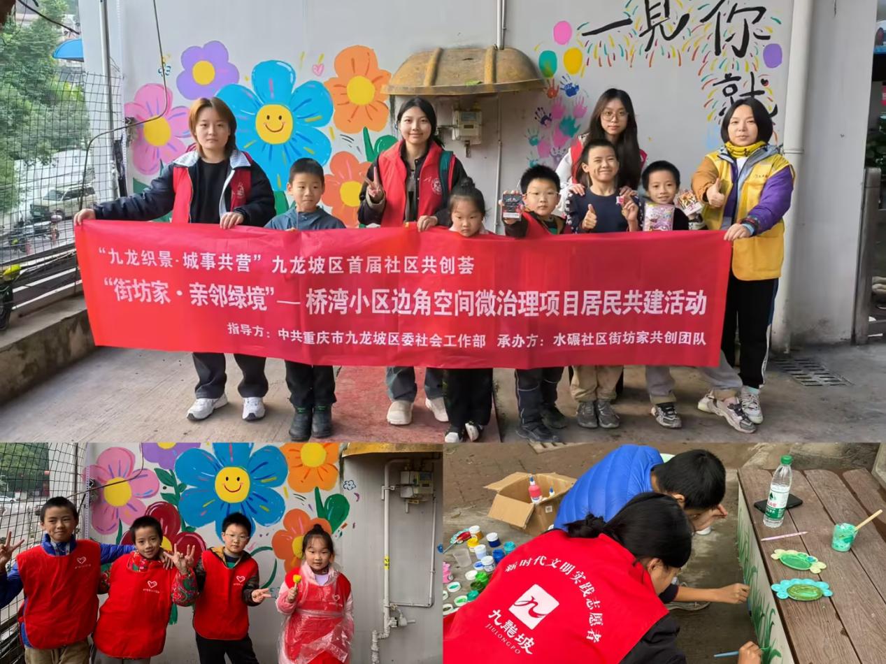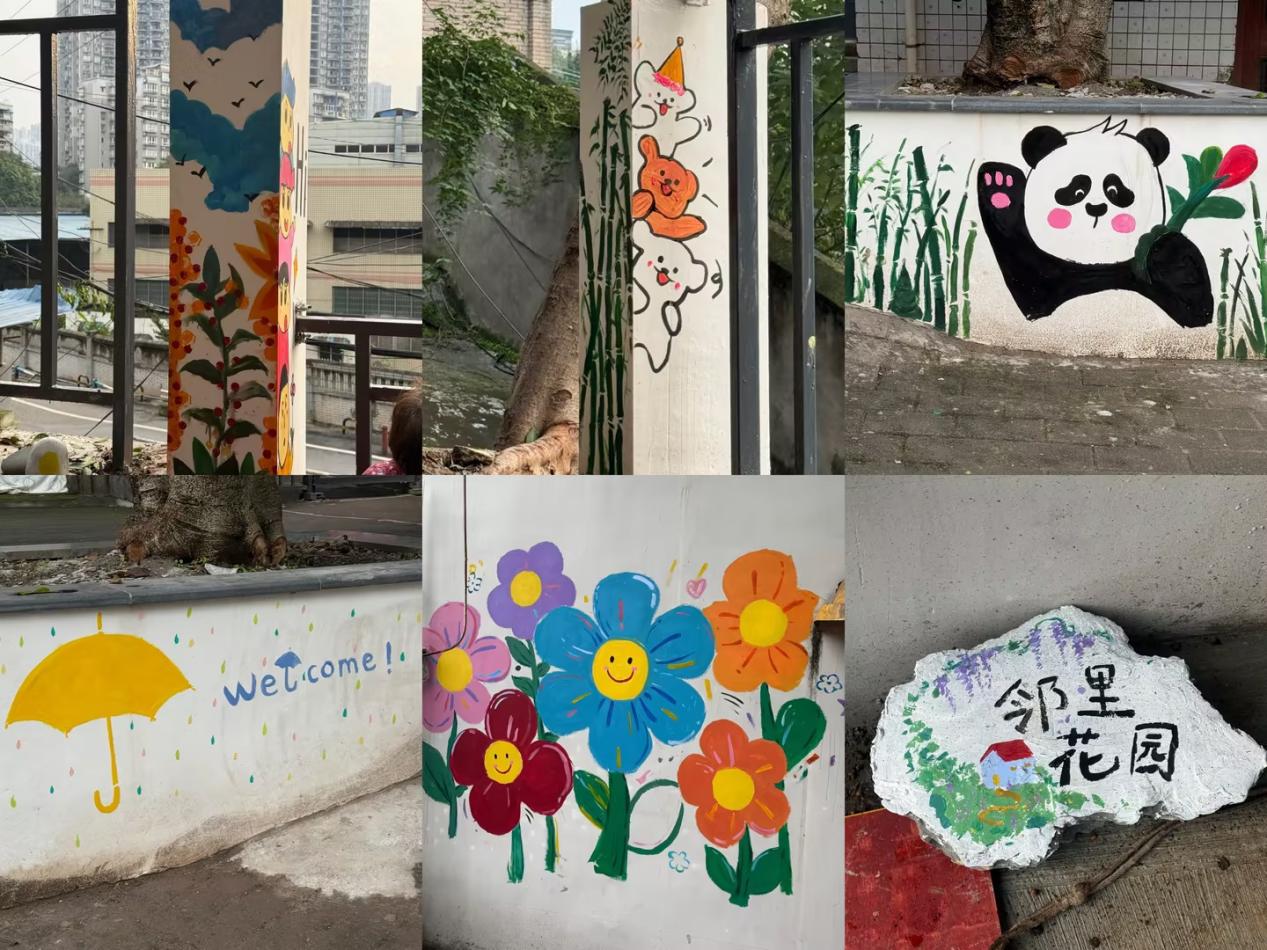 当前位置: 首页 >> 社区建设 >> 党员服务站 >> 正文 彩绘焕新“边角地” 共建睦邻新空间——艺术学院联合水碾社区开展小区微治理共建活动 时间:2025年12月01日 16:52 作者: 艺术学院党员服务站 2025年11月22日,九龙坡区水碾社区桥湾小区内暖意融融、色彩飞扬。由艺术学院党员服务站、功能型社区党支部与水碾社区联合发起的“街坊家亲邻绿境”边角空间微治理项目居民共建活动顺利举行,党员服务站的同学们与社区小朋友携手挥毫,用数十平方米的创意墙绘为老旧小区的闲置角落注入文明活力与艺术温度。 桥湾小区部分边角空间曾存在墙面斑驳、景观单调等问题,成为社区环境治理的“小痛点”。为响应居民对美好人居环境的期盼,双方以“微改造”撬动“大民生”为理念,精准对接需求推出墙绘共建项目,让“边角料”空间变身邻里共享的“风景线”。活动现场,学生志愿者提前做好墙面清洁、构图打稿等准备工作,社区小朋友们在指导下手持画笔,或勾勒卡通形象,或填充明亮色彩,将环保理念、邻里和睦、社区生活等元素融入画作。从创意构思到细节完善,从线条勾勒到色彩晕染,长幼搭档默契十足,原本单调的墙面逐渐绽放出鲜活生命力,吸引不少居民驻足点赞、拍照留念。 “参与墙绘不仅锻炼了专业技能,更让我体会到服务群众的责任担当,”艺术学院25级服装设计班的陈桓禾表示,“能以艺术专长助力社区治理,用实际行动践行志愿服务精神,是一次宝贵的实践历练。”社区小朋友们也兴奋地分享:“和大哥哥大姐姐一起画画特别开心,现在小区的墙变漂亮了,我们都要好好爱护它!” 此次活动以艺术为桥梁,既实现了社区边角空间的美化升级,更搭建起高校与社区共建共治的连心桥。 上一条:市海扬帆 调研引航——数学与统计学院举办大学生市场调查与分析大赛经验分享会 下一条:弘扬校训内涵 践行红岩担当——经济学院开展红色精神传承主题活动 【关闭】